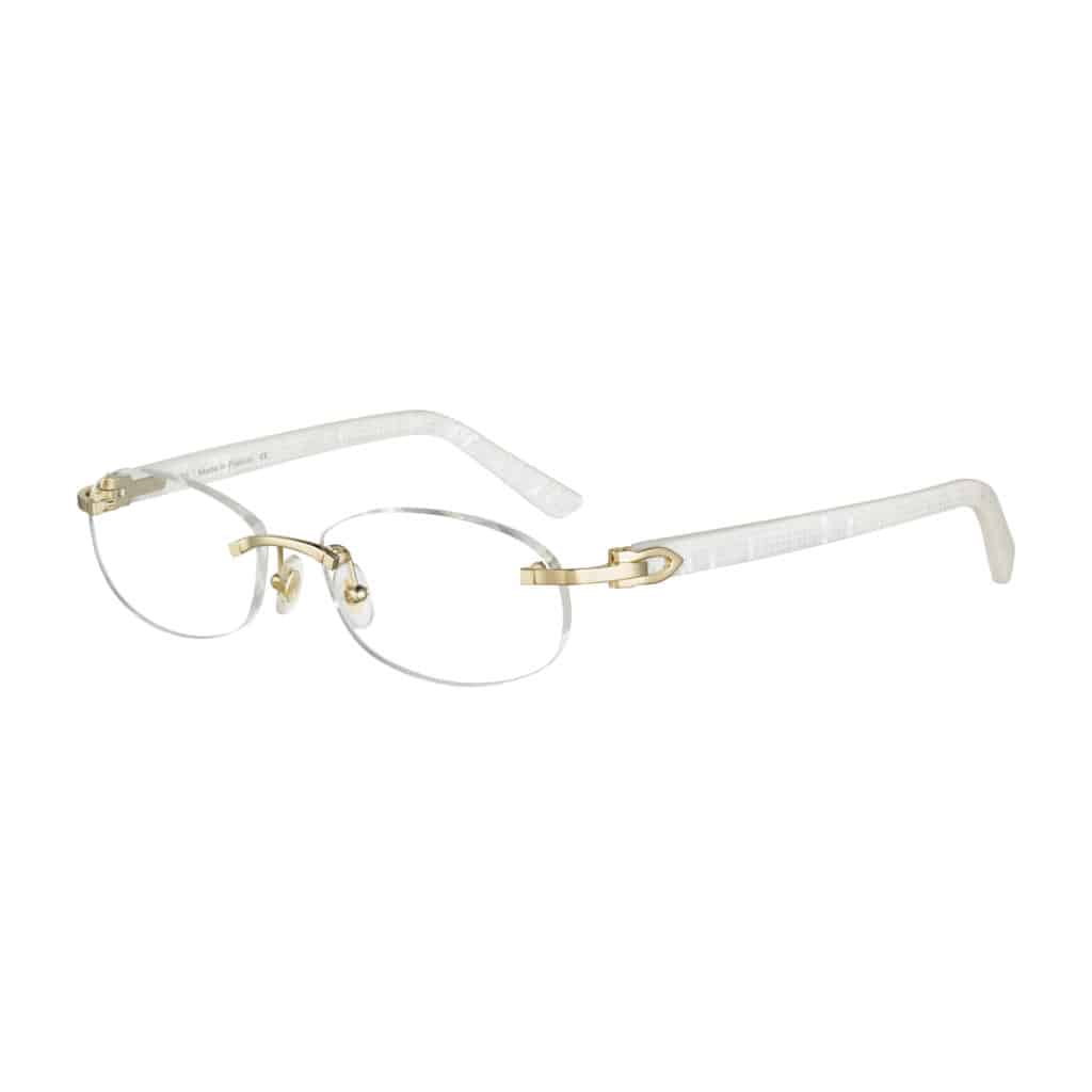 Cartier CT0056O Eyeglasses in an oval rimless shape enriched by the C Décor on the temples for an elegant and modern style. Precious finishes in gold adorning the décor and the metal parts. Temples equipped with flexible hinges for better comfort and fit, enabling the temples to fold back smoothly. Double C Décor signature on the nose pads.