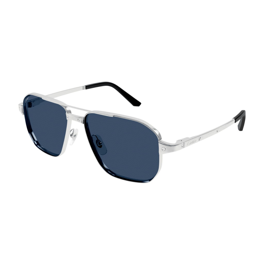 Masculine double bridge navigator shape to complete the Santos Evolution family with a bold bi-layer construction. Metal front enriched with an aesthetic flat metal component to enhance the Iconic Santos Screws and reproduce the watch’s shape. Recognizable Santos temples also enriched by the Santos screws décor and the Cartier logo engraved. The acetate temple tips present the iconic Screw Dècor. Precious finish in gold and platinum thanks to the bi-galvanic treatment.